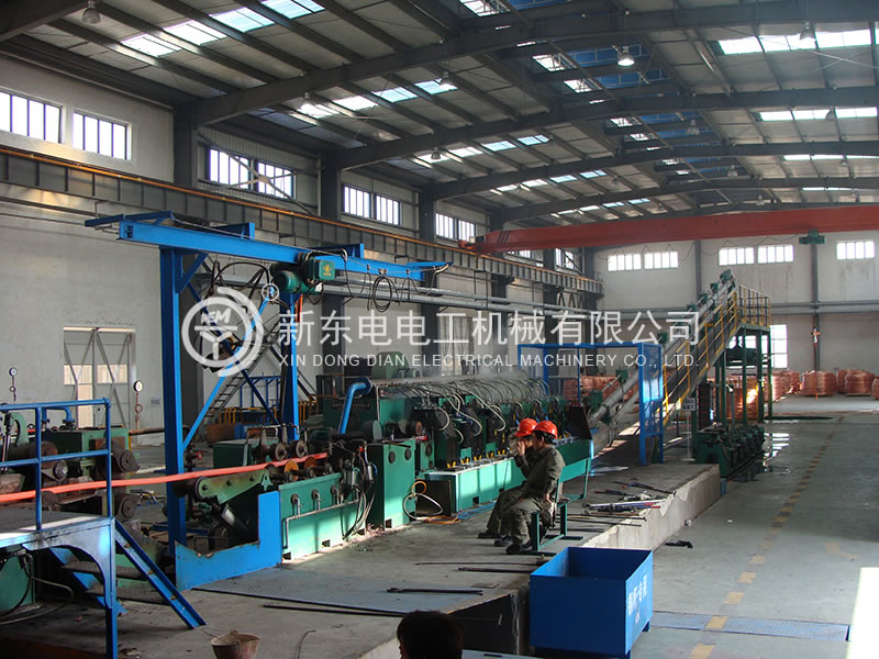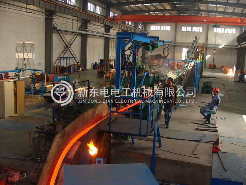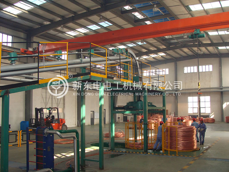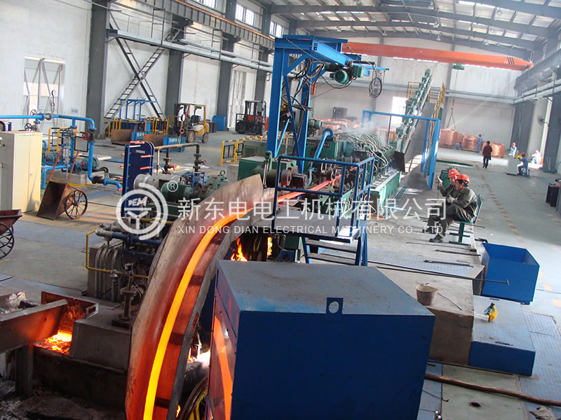 本生產(chǎn)線積徐州新東電電工多年研發(fā)銅連鑄連軋技術(shù)之經(jīng)驗,綜合美國南方線材、德國SMS、意大利 PROPERZI 同類設(shè)備的優(yōu)勢特點,為國內(nèi)獨創(chuàng),可用100﹪廢舊紫銅作原料,采用先進的火法精煉技術(shù),直接在連鑄連軋生產(chǎn)線上生產(chǎn)符合國標(biāo)的光亮低氧銅桿。