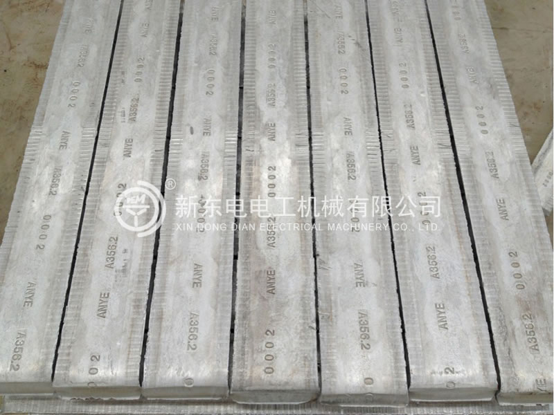 熔化的鋁液從保溫爐經流槽流入上澆煲,重力控制的浮動塞頭控制流入下澆煲的鋁液流量,鋁液從下澆煲水平澆鑄到由結晶輪和封閉鋼帶所形成的模腔內,結晶輪的截面為H型,四面冷卻保證鑄錠結晶致密且均勻。內外冷卻和側冷卻可方便地從結晶輪中轉出,便于冷卻水調節和設備維護;所有噴嘴均為不銹鋼。設有冷卻水壓力表顯示,鋼帶漲緊為氣動漲緊(可調節)。結晶輪的支承軸上裝有內冷卻裝置,通過壓力為0.2—0.5MPa的冷卻水,冷卻水通過噴嘴射到結晶輪的內表面上,內冷卻共分4區間水冷,外冷卻共分4區間水冷,內外側冷卻各為2個區間,從而使鋁液逐漸冷卻并凝固成為鋁鑄錠。